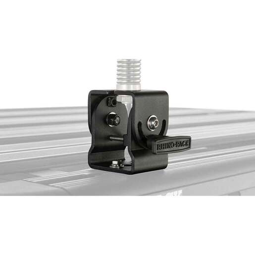 Rhino-Rack Folding Aerial Bracket Auto Rack Accessory - The Rhino-Rack Folding Aerial Bracket is designed with versatility in mind offering 180 degrees of rotation for aerials, antennas, flags, small LEDs and spotlights. The bracket can be installed to roof racks and Pioneer systems and using a C-channel mount and direct attachment to most popular bull bar brands. The bracket also has the option of perpendicular or parallel mounting. Made of robust fabricated steel for maximum durability and with large internal space for protecting cables and hardware. This product can make your life easier when transitioning from city to bush driving, quickly changing the height of your vehicle. Robust fabricated steel construction for the main body A variety of mounting methods including direct attachment to most popular bull bar brands and compatible with Rhino-Rack's Vortex bars, Heavy Duty bars and Pioneer systems 180° of rotation with 7 steps Anti-rotation hardware can be fixed by hand Folding mechanism can be mounted perpendicular or parallel with the car Large internal space for aerial hardware/cabling Allows for higher placement of aerial for greater reception Can be used with sand flags, aerials/antennas, small LEDs or spotlights Aerial/antenna mount hole: 17mm diameter Bull bar mount hole: 13mm diameter