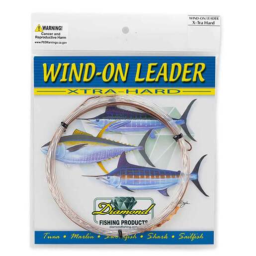 Diamond Fishing Products Xtra-Hard Wind-On Monofilament Leader - Diamond’s high strength monofilament and fluorocarbon combined with a low stretch dyneema loop creates the strongest, most dependable wind-on leader in the world. Diamond’s Wind-On leaders are attached with a loop to loop connection to your fishing line. The wind-on system improves bait presentation, eliminates the need for conventional long leaders and provides safer handling and releasing of fish at the boat.