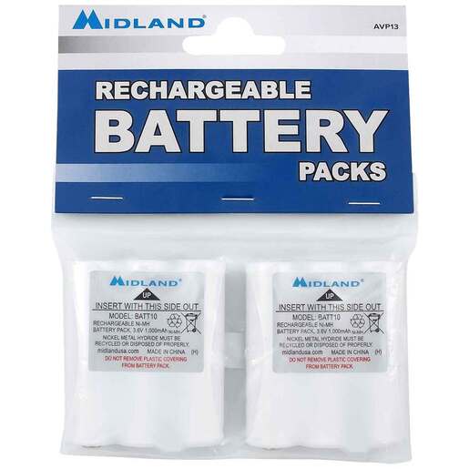 Midland AVP13 Rechargeable Battery Pack - Two rechargeable batteries. For T71, T75, T77. Features Compatible with X-Talker T71VP3, T75X3VP3, T75VP3, T77VP5.