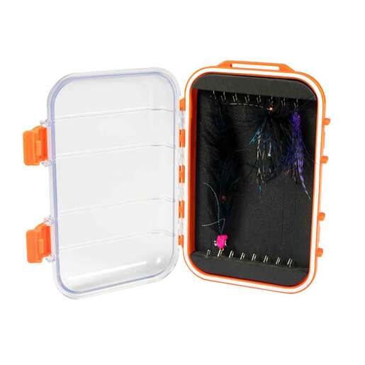 New Phase Articulated Fly Box - Water Resistant articulated fly box with stainless hooks and slot foam to hold large articulated patterns.