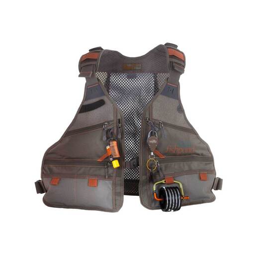 Fishpond Flint Hills Vest - Traditional, functional and affordable in style with fishpond. Cool, light mesh fabric and padded, weight-distributing shoulder straps for all-day comfort. Large "easy-access" back pouch for raincoat or gear storage. Gear attachment tabs, cord loops, and D-ring net lash. "One-size-fits-most" adjustable shoulder and waist strap designCool, light mesh fabric and padded, weight-distributing shoulder straps for all-day comfortSix zippered front pocketsLarge "easy-access" back pouch for raincoat or gear storageGear attachment tabs, cord loops, and D-ring net lash