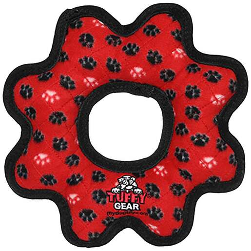 Tuffy Ultimate Gear Ring Dog Toy - Red - Great for interactive play with one or multiple dogs. Best for dogs who like to whip their toys and play tug for hours. Floats in water, and it’s machine washable, (air dry). 4 LAYERS OF MATERIAL - Tuffy Ultimate toys are made with UP TO 4 layers. 1 layer soft fleece on the outside. 1 to 2 layers of industrial grade luggage material on the inside. 1 layer of plastic coating on the inside. Features SEWN MULTIPLE TIMES - All of the toy layers are sewn together to make one super strong layer of material. Each toy is sewn together with 2 rows of cross stitching and 2 rows of linear stitching. Some toys have an additional piece of black trim which protects the edging and makes the toy even stronger. SQUEAKER SAFETY - The squeakers are attached to the toy with protective pouches. This feature provides a safe window to remove the toy from your pet should it reach the core. REMOVE LOOSE THREADS - Over time your pet may begin to wear down the different layers of the toy, and may loosen or remove pieces. This is normal. Remove loose threads to avoid ingestion. If your pet reaches the white stuffed core of the toy discard immediately. SAFETY FIRST! - Tuffy toys are "Built to Last", but keep in mind no toy will last forever. This toy is designed as an interactive "play" toy and is not a chew toy. No part of the toy should be ingested. Dog toys are meant for you and your pet to enjoy together. Don’t allow your pet to play with any toy unsupervised. Remember to be a responsible parent and stay close when your dog is playing with any dog toys.
