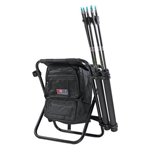 Bohning Shooter Stool with Arrow Tubes & Umbrella Holder - Shooter Stool features a built in cooler, padded seat and shoulder strap, pencil slots, scorecard pocket, large internal storage compartments, large mesh external pocket and reinforced stitching. Kit includes two anodized aluminum arrow tubes and an umbrella holder. Three carrying options: backpack with chest strap, shoulder strap, or by hand. Exterior transparent vinyl & mesh pockets Frame capacity supports 300lbs