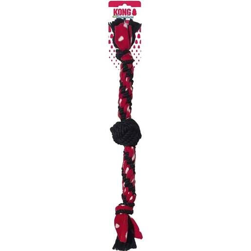 KONG Rope Dual Knot Tug Toy with Ball - KONG Signature Dual Knot Rope has a unique braid of cotton and fleece that provides an uncompromised stretchy delight that is gentler on a dog’s mouth. The durable material ensures that natural chewing behavior is rewarded again and again with the added benefit of helping clean teeth. The two knots double the fun while making games of instinctual tugging even more engaging. 22in Length