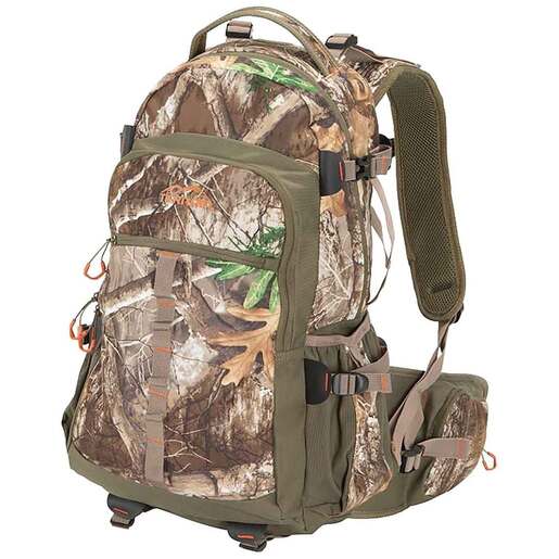 Allen Terrain Reservoir 30 Liter Hunting Daypack - The Terrain Reservoir 1800 daypack is built for a day trip in the mountains. Made from a quiet fabric in Realtree Edge Camo and has dual water bottle holders. Keep your gear secured to you as you traverse rough terrain with an adjustable, padded waist belt and shoulder straps with a sternum strap. Features Padded Back Support Panel Quiet Fabric Dual Water Bottle Holders Realtree Edge Camo Padded Shoulder Straps Adjustable Sternum Strap Waist Belt Adjusts to 52--Inch