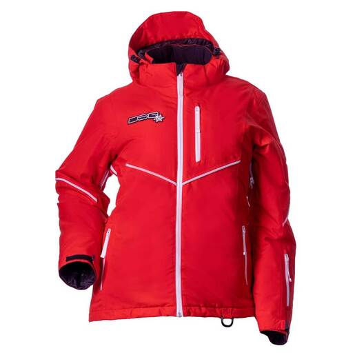 DSG Outerwear Women's Trail Elite Insulated Jacket - The newest addition to the DSG Outerwear lineup is the sporty Trail Elite line. With a beautiful feminine silhouette, this jacket was designed with the female rider in mind. The Elite Trail Jacket is waterproof with fixed insulation, making it ideal for all of your trail rides. If you have been seeking out a jacket that is sleek, sporty, warm, waterproof and full of features, look no further! Durable shell with a 10,000mm MVT/ 10,000g/m/24hrs waterproof breathable coating with Teflon treatment on the face of the fabric to shed water 100% seal taped seams Primaloft insulation with 200 grams in the body and 170 grams in the sleeves Removable adjustable hood YKK AquaGuard zippers on the exterior of the jacket Reflective piping for nighttime visibility Underarm vents for temperature regulation Interior vertical zip pocket with headphone port and securing loop Large interior mesh pocket Interior powder skirt Internal draw cord at waist Interior lycra wrist gaiter with thumb hole Adjustable hook and loop cuffs Soft, micro fleece interior collar, chin guard and upper portion of interior front windflap Interior zipper pocket with key clip Tether D-ring DSG logo zipper pulls and patches Style: 52272