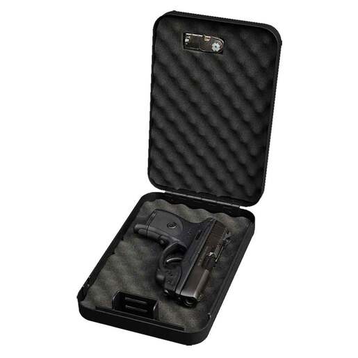 Bulldog Personal Vault Combination Lock Pistol Safe - The Bulldog Personal Cobmination Lock Vault is designed for maximum security. Its 18 gauge steel deluxe heavy duty metal combination lock and deluxe egg crate foam keep your valuables secure in place. Included is a heavy duty steel security cable and its unique hinge design keeps the lid open in position. Black powder coat finish Combination / Key entry Egg crate foam interior Security cable / T2 keys Meets TSA firearm guidelines for travel 18 gauge steel finish