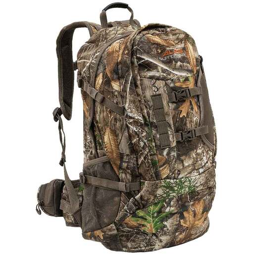ALPS Outdoorz Falcon 41L Hunting Day Pack - The Falcon offers a vented-back design that allows for maximum airflow to your back while carrying your gear. The vented back of the Falcon increases comfort in an already reliable platform that you would expect from ALPS OutdoorZ. It has two main compartments: one containing organizational pockets to keep everything right where you want it and the other is a large main compartment which also has a sleeve and port for a hydration bladder. The Falcon has 2500 cubic inches of storage and has a dual directional frame to help support heavy loads. The padded waist belt also has two zippered pockets for small gear that needs to be easily accessible such as your range finder, GPS, or extra ammo. With a drop-down weapon pocket, you can carry your bow or rifle securely, safely and hands free. Other features include a Blaze orange rain cover, lower side mesh pockets and webbing straps for lashing on extra gear. Features: Vented back allows maximum airflow Organizational pocket keeps gear organized Drop-down pocket to carry your gun or bow securely Large front and main pocket Front lashing system Padded waist belt with two pockets Waist belt can accommodate clip-style holsters so you can securely carry a handgun Dual-directional frame helps support heavy loads Rain cover is neatly stowed in a zippered pocket on the bottom of the pack until needed Hydration compatible Lower side mesh pockets Webbing loops for lashing