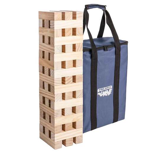 Triumph Giant Tumble Tower - Stack the blocks as high as you can before watching the tower come tumbling down. The Triumph Competition Tumble Game takes a classic to a whole new level! This giant outdoor game challenges players to remove blocks from a tower in hopes of keeping the structure standing and stable. Triumph Competition Tumble is a great game for families, parties, and lazy days in the backyard. The set includes an official Triumph Tumble durable carry case for easy portability and safe storage. The Tumble Game contains a total of 51 pieces, each 7.8" L x 2" W x 2" H. Each block is made out of all natural wood. Features Large natural solid wood game pieces for outdoor play Try to remove the blocks without making the tower tumble 51 solid wood tumble blocks measure 7.8" L x 2" W x 2" H Easily store and transport the set in the heavy-duty carry bag Play on teams or one-on-one at parties, tailgating, or backyard fun