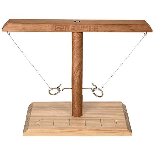 Triumph Hook and Ring Battle - Three, two, one… Battle! The competition has been upped with the Hook & Ring Battle as each player quickly tries to hook the ring and move the game piece toward their opponent. Each successful hook allows the player to advance the wooden game piece until it has been moved off the scoring ladder. This is the perfect addition for any game room, party, vacation, and more! Features Fast paced and addicting – Place the wooden game piece in the middle and go! The fun never stops as each player quickly tries to hook the ring and move the game piece toward their opponent Integrated scoring ladder - The player wins when the wooden game piece moves off the opponents end of the integrated scoring ladder Bring the party – Perfect for game rooms, basements, or take the Hook & Ring Battle to your next family gathering, tailgating party, or vacation Fun for all ages – Ideal for kids, adults, and players of all ages Quality construction – Each set includes Hook & Ring set, integrated scoring ladder, wooden game piece, and 2 extra strings