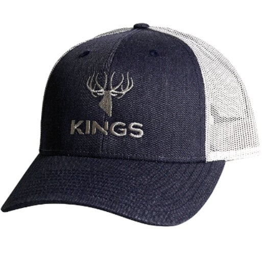 Kings Camo Men's 115 Embroidered Logo Adjustable Hat - Designed with an adjustable backing for a perfect fit, every time. The mesh back panels allow breathability and the front features an embroidered Kings Camo logo. Richardson 115 snapback Cotton twill front panels Embroidered Kings Camo signature logo Solid color panels Mesh back Style: 115-NH/LG