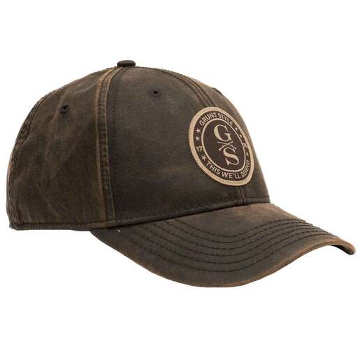 Grunt Style Men's Defender Seal Waxed Adjustable Hat - This classic hat features a This We'll Defend logo patch on waxed canvas, so you can show off your patriotic pride wherever you go. Unisex fit Structured, low-profile cap with curved visor Faux waxy cotton Plastic snapback closure Center-front woven label Grunt Style woven label on left side Tab woven label at closure Screen-printed seam tape Style: GS5029