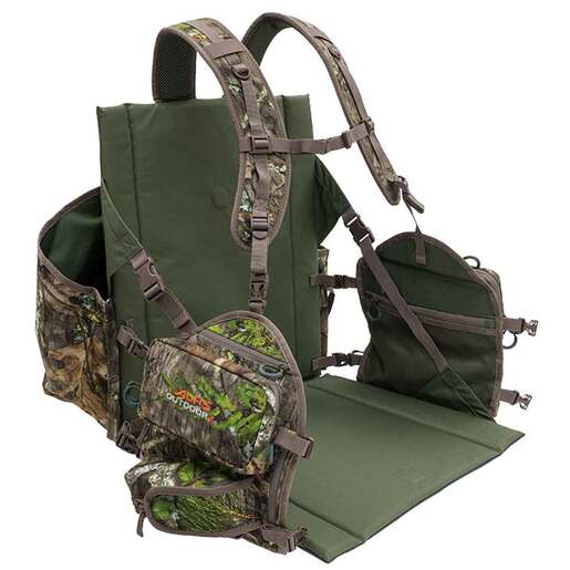 ALPS Outdoorz Men's Mossy Oak Obsession Impact Hunting Vest - The functional design of the Impact Vest gives hunters a versatile, light-weight, sit-anywhere hunting vest; ready at the flip of a seat. Sit-anywhere, lightweight design Easily adjustable to accommodate a variety of sizes Game bag on the back of the vest Removable seat Removable front pocket with shoulder strap for run n' gun style hunts Silent box call pocket Slate call pocket for two slate calls and three strikers Five shotgun shell loops and three diaphragm call pockets Pocket on inside of game bag for decoy stakes Magnet included on standard size to hold seat in place while not in use Style: 8450100