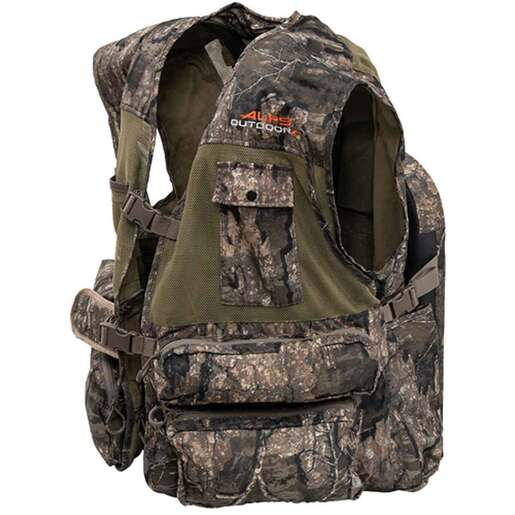 ALPS Outdoorz Men's Realtree Timber Super Elite 4.0 Hunting Vest - The Super Elite 4.0 is the perfect turkey vest for every hunter. Whether you take only the essentials or prefer to have an arsenal of gear at your disposal, the Super Elite 4.0 turkey vest is sure to fit every turkey hunter's specific needs. Game bag on back of the vest Removable 2.5in thick fold-away seat cushion with quick-release buckle attachments Quiet cotton liner Mesh panels throughout Easy access cell phone chest pocket Two large slate call pockets with padded dividers Three striker pockets Protective and silent box call pocket Two mesh diaphragm call pockets 22 total pockets Style: 8452924