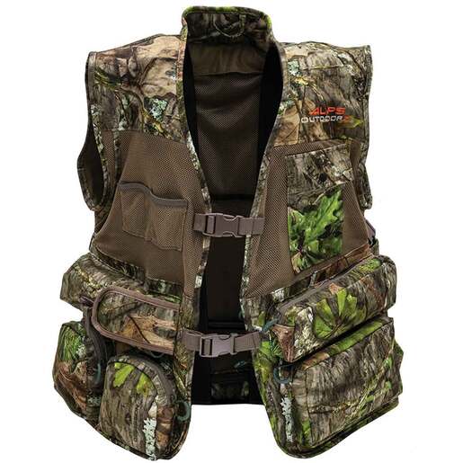 ALPS Outdoorz Men's Mossy Oak Obsession Super Elite 4.0 Hunting Vest - The Super Elite 4.0 is the perfect turkey vest for every hunter. Whether you take only the essentials or prefer to have an arsenal of gear at your disposal, the Super Elite 4.0 turkey vest is sure to fit every turkey hunter's specific needs. Game bag on back of the vest Removable 2.5in thick fold-away seat cushion with quick-release buckle attachments Quiet cotton liner Mesh panels throughout Easy access cell phone chest pocket Two large slate call pockets with padded dividers Three striker pockets Protective and silent box call pocket Two mesh diaphragm call pockets 22 total pockets Medium/Large (chest sizes 38in – 44in) X-Large/XX-Large (chest sizes 44in – 52in) Style: 8451900