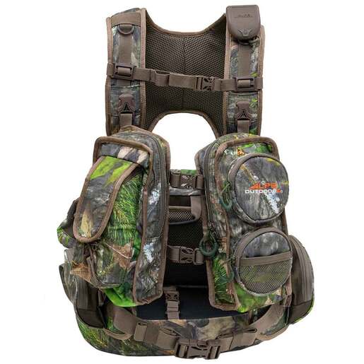 ALPS Outdoorz Men's Mossy Oak Obsession Long Spur Deluxe Hunting Vest - The Long Spur Deluxe includes all of the great features of ALPS Long Spur but also has an added bonus of a removable, thick-padded memory foam seat that easily folds away. The rear-facing lumbar pack offers 500 cubic inches of storage, a fully removable shoulder harness with a large game bag, and a removable padded waist belt with two zippered pockets. The Long Spur Deluxe is extremely adjustable and can easily be customized to fit whatever situation may arise while out in the field. Versatile turkey hunting vest system Removable shoulder harness with large game bag Removable 3in memory foam fold away seat Removable padded waist belt with zippered pockets Removable protective diaphragm call pocket Fully adjustable with multiple webbing strap options Easily removable lumbar pack for run n' gun style hunts Protective and silent box call pocket Two slate call pockets Five shell loops Two mesh mouth call pockets Locator call pockets Waist belt range: 33in-61in Style: 8459000