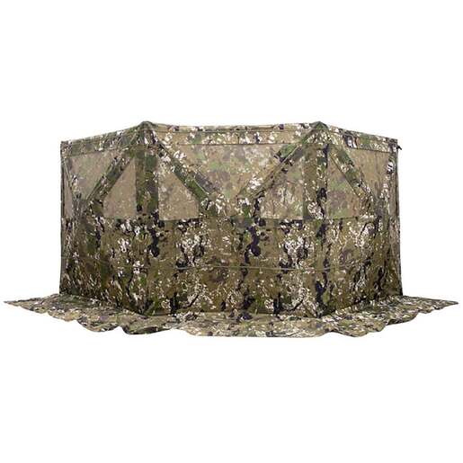 Barronett Face-Off Adjustable Panel Blind - Crater Thrive - The Face-Off Adjustable Panel Blind is the larger, see-through cousin of the Barronett Blinds Field Shield. Don’t let its size fool you though, the Face-Off still weighs in at only 12 pounds, making it ideal for run-and-gun hunting situations. The Face-Off is ready for the elements with its heavy-duty 2-Layer Bonded Fabric and offers superior visibility with a 1-Way Fabric window attachments. The 1-Way Fabric offers you more cover that you can see through from the interior, but prey can’t see though on the exterior. The windows feature noiseless toggle and loop attachments ensuring you can get the perfect shot while remaining concealed. The included heavy-duty adjustable ground stakes and oversized ground skirt offer 16-inches of up and down adjustability which makes the blind perfect for different sized hunters and uneven terrain. Pair the Face-Off with Barronett's matching Ground Gobbler Chair and you’re ready for a concealed and comfortable sit. Adjustable height for different sized hunters and uneven terrain Constructed with durable 2-layer bonded fabric featuring camo on both sides The 1-Way Fabric window panels offer you more cover that you can see through from the interior, but prey can’t see through on the exterior Quiet, toggle and loop window attachments for noise free adjustment Deploys in seconds — simply pop open the two hub panels Pairs perfectly with the Barronett Blinds Ground Gobbler Chair Easily connects with additional Face-Off blinds for multiple person sets Brush in your set up with the two rows of stubble straps to further enhance concealment Includes adjustable heavy-duty ground stakes Includes carry bag with chair pocket