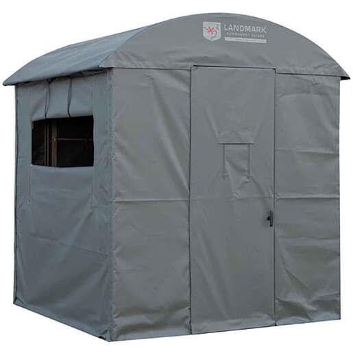 Rivers Edge Treestands Landmark 600 Permanent Blind - Portable ground blinds take a beating from the sun, wind, rain, and snow. Colors fade, materials rot, poles break and fabric tears. The Landmark 600 Permanent Blind was designed and constructed to resist the elements year after year. The durable steel frame is covered with marine-grade reinforced synthetic tarpaulin, made from the same rugged materials used in pick-up truck tonneau covers. The adjustable horizontal windows and clip-on vertical panels allow for custom openings during your hunt. The hinged door provides plenty of space for easy entry and exit whether on the ground or using the Landmark 600 10’ Tower. If you’re looking for an affordable year-round hunting blind with enough room for group hunts and archers, the Landmark Permanent Blind is for you. 7’ height allows for standing shots 6’ x 6’ interior space allows for multiple hunters Adjustable horizontal windows and clip on vertical panels allows for custom openings Hinged door for easy entry and exit Features a gear shelf with accessory hooks Constructed of marine-grade reinforced synthetic tarpaulin Rigid, steel frame won’t collapse like portable hub blinds Capacity: 3 Person