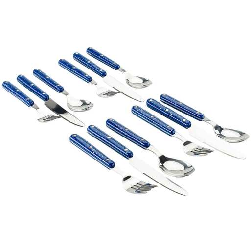 GSI Outdoors Pioneer Cutlery Set - From campsite to cabin to farmhouse kitchen, the enamelware collection blends classic style with rugged durability. The GSI Outdoors dinnerware collection is suited for both indoor and outdoor use. The finishing touch to a classically elegant enamelware table setting Major Dimension: 4 Person Includes: 4 Tablespoons, 4 Forks, 4 Knives Material: Stainless Steel Dimensions: 2.8in x 2.8in x 8.5in Weight: 26.1oz