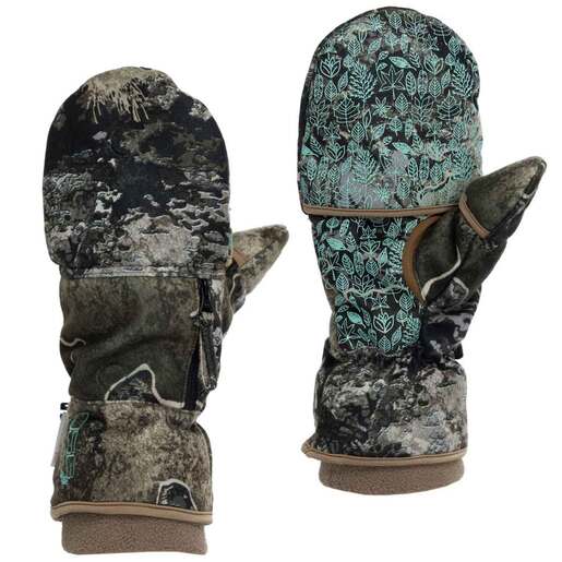 DSG Outerwear Women's Realtree Excape Flip-Top 4.0 Hunting Mitt - Warmth, comfort, and versatility combine in the Flip-Top 4.0 Mitten with liner glove. The DWR treatment ensures that water is shed off the fabric, keeping your hands dry and comfortable in wet conditions. Quiet brushed waterproof/windproof fabric DWR treatment to shed water off the fabric Branded 80g Thinsulate insulation Built in liner glove portion using polyester spandex material Touch screen compatible index finger and thumb Grippy silicone printed palm in “leaf” pattern Zipper pocket on the back of the hand to add heat pack or to open for venting Magnets to securely hold back flip top mitt portion and thumb Style: 517893