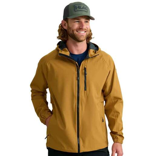 Huk Men's Rover Waterproof Fishing Rain Jacket - The Rover jacket was created to provide versatile protection from the elements built with lightweight 2.5 layer waterproof fabric. This jacket is perfect for travel, day-to-day activities, or anytime optimal portability is needed. Stow it on the boat, in your truck - or anywhere really. Seam sealed zippered front Zip closure, seam sealed hand & chest pockets Back storm flap for breathability Bungee bottom hem for adjustable fit Style: H4000148