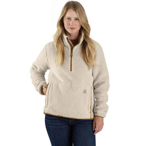 Carhartt Women's Loose Fit Fleece Jacket - Pull on this women's fleece pullover when the temps drop. It has a loose fit that's made to layer. Elastic cuffs help seal out cold air, and zipper pockets keep work-day essentials secure. Elastic cuffs Secure zipper pocket Length: 26.75in Style: 106470