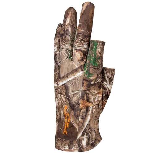Rustic Ridge Men's Realtree Edge 3 Finger Lightweight Hunting Gloves - Keep your hands dry, warm and ready to perform through even the most wicked late-season storms with this lightweight hunting glove. Uncovered pointer and thumb Rustic Ridge logo Style: 0E-149