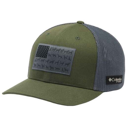 Columbia PHG Game Flag Mesh Fitted Hat - Whether you're tracking game in the woods or running errands around town, this PHG mesh cap is made with hunters in mind. Flag patch on front Columbia logo tag on side panel Mesh back 100% cotton front, 95% polyester/5% polyurethane back Style: 2010841