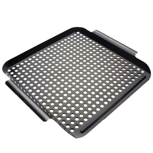 Mr. Bar-B-Q 12in x 12in Non-Stick Grill Topper - Non-Stick Gourmet Topper with Handles. Keeps Small Items from falling through the Grate. Features Raised Edges for Convenient Spatula Use. Non-Stick for Easy Cleaning.