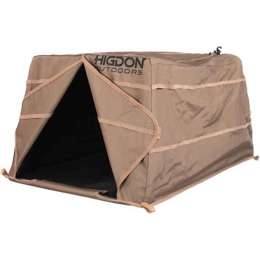 Higdon Outdoors Quick Draw Dog Ground Blind - The Higdon Quick Draw Dog Blind is a no-nonsense dog blind. The pin-free design and lightweight construction makes this blind super quick and easy to deploy. Constructed of durable 600D waterproof backed polyester. The Quick Draw Dog Blind includes sewn on stubble straps that make brushing this blind a quick job. Dual doors allow you to choose the point of entry and exit for your dog as well as the amount of concealment that you want for your retriever. The included shoulder strap allows for hands free transportation. Quick. Easy. Effective. • Lightweight, quick to deploy • Cary handle and shoulder strap • 36in L x 24in W 20in H • Weight: 9lbs