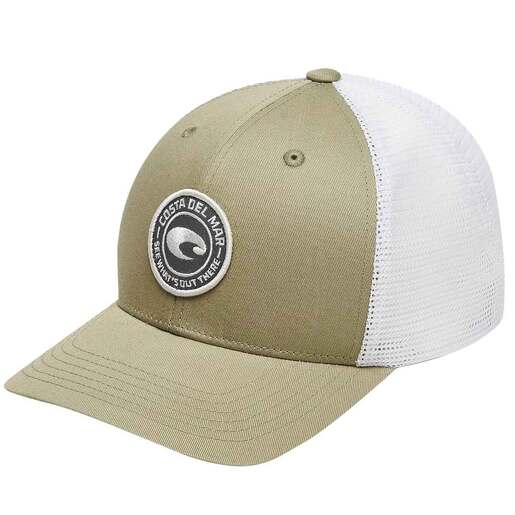 Costa Medallion Trucker Hat - Designed with an adjustable backing for a perfect fit, every time. The mesh back panels allow breathability and the front features a medallion patch. XL fit 6 panel mesh back trucker Snapback closure Twill patch 65% polyester, 35% cotton Hat brim insert made from 100% recycled materials Style: FQS900219