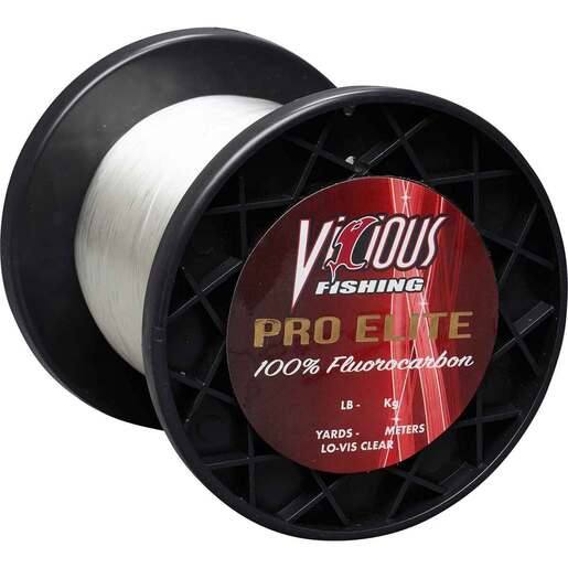 Vicious Fishing Pro Elite 100% Japanese Fluorocarbon Fishing Line - Manufactured with the highest grade resins and state-of-the-art extrusion techniques, Pro Elite Fluorocarbon has been tournament tested in some of the toughest, most demanding conditions in the nation. This highly supple line provides incredible sensitivity, superior abrasion resistance, and the strength to deliver lip-ripping hook sets. For the serious angler looking for a high-performance fluorocarbon, this level-wound product is the one. • 100% Fluorocarbon • Level-wound • Incredible sensitivity and knot strength • Invisible under water • Abrasion resistant • Made in Japan