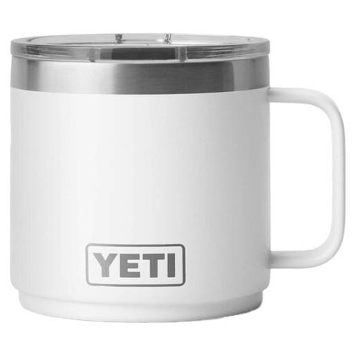 YETI Rambler 14oz Stackable Mug with Magslider Lid - Unlike traditional camp mugs, this double-wall, vacuum-insulated body protects hands from hot or cold contents while keeping coffee, chili, or oatmeal nice and hot. And now, it stacks up and stores out of sight. Like all Rambler Drinkware, the mug and lid are dishwasher safe. Features Stackable 18/8 Stainless Steel 360 degree welded handle Splash resistant Please note: The mug’s wide opening means content may cool quicker. That’s why the mug comes with the MagSlider Lid. Do not place mug over external heat source or open flame. Vacuum seal or other damage may occur. This magnet slider is not leakproof and will not prevent spills.
