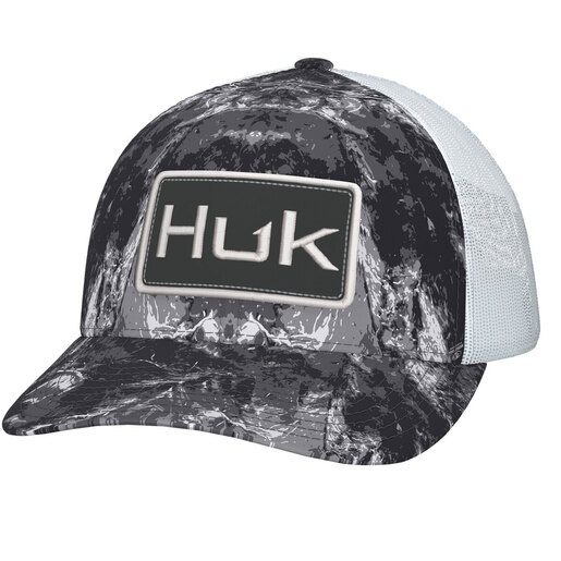 Huk Men's Mossy Oak Stormwater Logo Trucker Hat - An all new, exclusive pattern Huk built with Mossy Oak that pays tribute to the power of mother nature, while representing the hard working, "hammer down and get it done no matter what" attitude found in those who make a living on the water. 60% cotton/40% polyester 3D embroidery Huk logo on fabric patch Dark gray under visor to fight glare Moisture-wicking sweatband Mesh back for breathability Adjustable snap back closure Style: H3000504