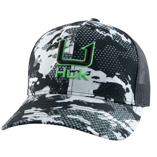 Huk KC Printed Trucker Hat - The KC Scott printed trucker hat features a 3D embroidered Huk logo on a fabric patch, along with a sleek dark gray under visor to combat glare and a moisture-wicking sweatband for all-day comfort. 3D embroidered Huk logo Adjustable fit Sleek dark gray under visor Moisture-wicking sweatband Style: H3000537