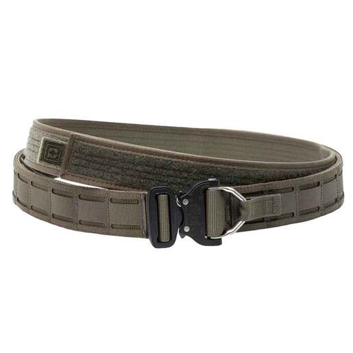 5.11 Maverick Battle D-Ring Belt - Uncomfortable and abrasive gear belts that require escape-artist skills to don and ditch are a thing of the past with our Maverick Battle Belt D-Ring. Outer belt constructed with proprietary TAC-LAM high strength laminate, dual nylon webbing and hook backing for inner belt attachment Adjustment end of outer belt secures to inside of belt Ergonomic curved shape Tie down strap for D ring Laser-cut laminate MOLLE Inner belt constructed with nylon webbing and loop face Austri Alpin COBRA buckle with integrated D ring TAC-LAM high strength laminate/Nylon webbing Style: 56785ABR