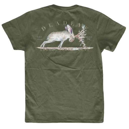 Deadeye Men's Jack The Stripper Short-Sleeve Casual Shirt - This fun and playful shirt features a striking jackalope graphic that blends folklore and nature in a stylish design. Crafted from soft, breathable fabric, it ensures comfort whether you’re exploring the great outdoors or relaxing with friends. Soft, breathable fabric for maximum comfort Eye-catching jackalope graphic design on the back Relaxed fit for easy layering and movement Small Deadeye Outfitters logo on the front Style: DEO24225
