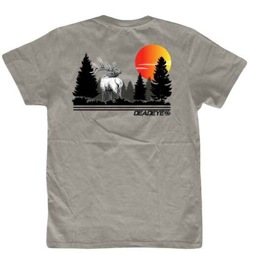 Deadeye Men's Golden Hour Short-Sleeve Casual Shirt - This stunning shirt showcases a majestic elk set against a backdrop of a serene forest, bathed in the warm, golden light of sunset. The intricate design reflects the tranquility and splendor of the wilderness, making it a perfect choice for outdoor enthusiasts and nature lovers alike. Soft, breathable fabric for ultimate comfort Beautiful elk graphic set in a forest at golden hour on the back Relaxed fit for easy layering and movement Small Deadeye Outfitter logo on the front 60/40 cotton/poly fabric Style: DEO24230