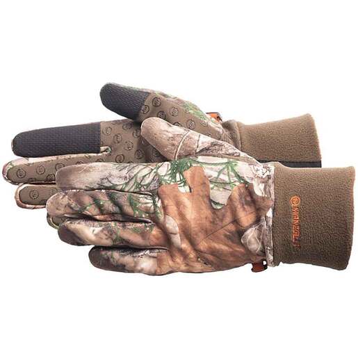 Manzella Men's Ranger TouchTip Hunting Gloves - Realtree Edge - Ideal form-fitting hunting glove keeps it shape with each wear. The custom palm grip helps keep tight control of firearms with the right amount of padding. 4-way comfort stretch compression with water resistant shell for close contact connections with hunting gear Control Trax are designed for better palm grip on your gear Antimicrobial scent control reduces scent so you can on the hunt without getting noticed Water resistant shell means your hands stay drier longer