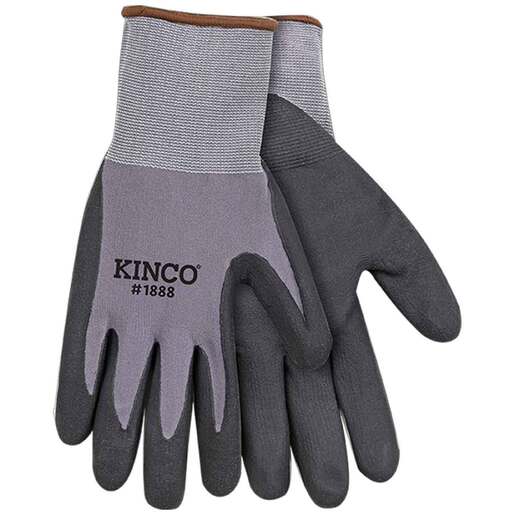 Kinco Men's CoolCoat Micro-Foam Nitrile Palm Work Gloves - An all-around great glove for everything from mechanical work to lawn and garden maintenance to HVAC repair and more, this pair features a stretchy and strong 15-gauge nylon-spandex blend knit shell that stands up to scuffs and scrapes like a champ. Gray 15-gauge nylon-spandex blend knit shell stretches while maintaining its strength Black CoolCoat breathable micro-foam nitrile coated palm keeps hands cool & dry, while providing dependable grip, dexterity, & resistance to light oils Continuous nylon-spandex blend & elastic knit wrist provides a snug fit that helps to prevent debris from infiltrating the glove Color-coded polyester overlock hem indicates size & helps prevent fraying Seamless design for dexterity & comfort California Proposition 65 Warning - P65Warnings.ca.gov Style: 1888