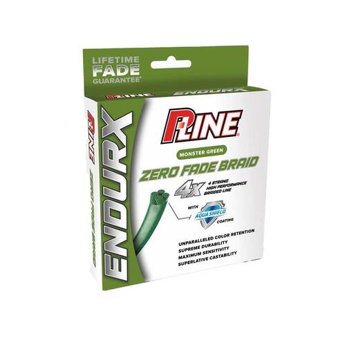 P-Line EndurX Braid 4X Zero Fade Fishing Line - EndurX braid has all of the features and benefits of traditional braided lines, an extremely high strength to diameter ratio, braided with 8 carriers which make the weave tight and compact, virtually no stretch and a silky-smooth surface which gives it great castability. What separates EndurX from the competition is the use of a No-Fade raw material which is colored before the braiding process takes place. Anglers can expect a braided line which has unparalleled color retention which is why we are offering a lifetime guarantee against fading. It’s simple, the braid you put on your reel today will be the same color tomorrow and for years to come and we guarantee that! Unparalleled Color Retention Lifetime Fade Guarantee Supreme Durability Maximum Sensitivity Superlative Castability