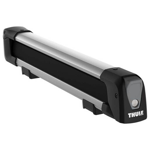 Thule SnowPack Medium Ski and Snowboard Rack - Sleek, aerodynamic ski rack for all types of skis and snowboards. Features Fits: Up to 4 Pairs of Skis Up to 2 Snowbaords Holds skis and snowboards securely with ultra-soft rubber arms that grip without scratching the surfaces Safely carries thicker modern skis and snowboards, and reduces the carrier height when unloaded due to the integrated vertical spring system Easy to open and close while wearing gloves, thanks to an oversized push button Added roof clearance for skis with tall bindings, thanks to included extension feet that raise the carrier Fits Thule rack systems, round bars, and most factory racks with both T-Track and Speed-Link around-the-bar mounting options