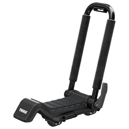 Thule Hull-a-Port XTR Kayak J-Style Rack - Versatile, lockable kayak rack that carries one or two kayaks and folds flat when not in use. Features Carry up to two kayaks due to the dual position design that transforms from a J-cradle to two boat stacker position Integrated StrapCatch for easy strap management when loading kayak Upright folds flat when not in use Fully assembled out of the box Locks to load bars with Thule’s One Key System Lock Cylinders (sold separately) Universal mounting design fits all types of load bars up to 80.5 mm wide quickly and easily Load straps with buckle bumpers and bow and stern tie downs included for one boat Supports one boat up to 75 lb or two boats with combined weight of 130 lbs or less