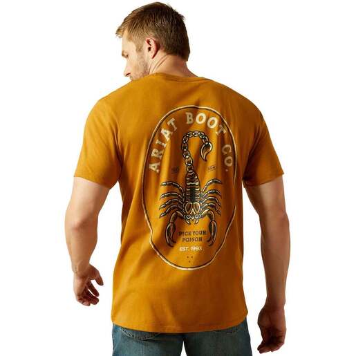 Ariat Men's Scorpion Seal Short-Sleeve Casual Shirt - Classic look. Bold Ariat style. This easy, everyday T-Shirt lets you rep your favorite brand in the comfort of soft jersey fabric. Perfect for everyday wear with a familiar, easy fit USA grown cotton Large back graphic Style: 10062420