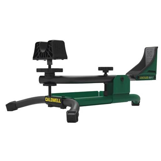 Caldwell Lead Sled Solo 2 Shooting Rest - The Caldwell Solo 2 gives the shooter everything they need to sight in without taking the kick. The pivoting frame design features an elevation adjustment that gets on target fast, with an offset design to work with detachable magazines, pistol grips, or lever action firearms. The weight tray holds up to 50lbs. of lead shot or the Caldwell Lead Sled Solo Weight Reservoir to tame heavy recoil. The shock-eliminating rear support protects the shooter's shoulder as well as the firearm and scope from recoil. Take the pain out of sighting in get the Lead Sled Solo 2 and Eliminate The Variables That Make You Miss. FEATURES: Reduces up to 85% felt recoil Weight tray fits the Lead Sled Solo Weight Reservoir or lead shot to eliminate recoil Center pivot for rapid elevation adjustment All-weather front rest with coarse elevation adjustment Rear support featuring shock eliminating pad reduces felt recoil and protects stocks from damage Offset frame design works with detachable magazines and lever action firearms