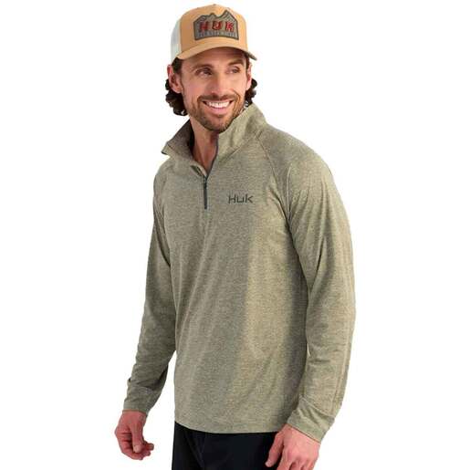 Huk Men's Airweight Heather 1/4 Zip Long Sleeve Fishing Shirt - Huk is stoked to introduce thier newest technical fabric - the Airweight Collection. Made from ultra lightweight and soft material, this shirt is stacked with performance. Insane stretch allows unhindered casting and movement, UPF 40+ performance keeps you protected all day, the breathable and quick drying material keeps you cool and dry, and the anti-microbial treatment manages on-the-water smells when you get off the water. UPF 30+ Side panel details Raglan sleeve for full range of casting motion Moisture transport Anti-microbial 1/4 zip styling Style: H1200715