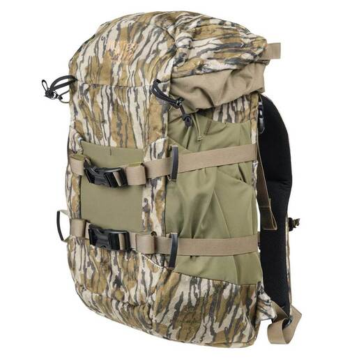 Mystery Ranch Treehouse 20 Liter Hunting Backpack - Wildly durable, water-resistant and wilderness quiet. The TREEHOUSE 20 pack is a hanging gear quiver designed specifically for treestand hunters looking for a quick run and gun mission. Fuzzy polyester laminate backed with Nylon 210 fabric dampens sound, is ultra-quiet, resists water, and provides easy access to the interior without giving away your location. The top-loading access is complemented by multiple interior sleeves and cinch pockets for organization and customized accessory attachment. The pack’s lid features a deep shelf on its interior allowing quick access to your most essential tools. It also opens away from the tree allowing for easy access to the inside of the bag. An adjustable tree strap allows the pack to be quickly attached to the tree in the optimal position. Front compression straps provide secure attachment for a bow, lightweight treestand or climbing sticks, and the side pockets and compression securely fit quivers, camera arms or other treestand essentials. Features Wildly durable, water-resistant and wilderness quiet - the unique custom-designed fuzzy polyester backed with Nylon 210D laminate fabric keeps the focus off you. Internal cinch pockets with silent closures and additional workspace in the lid provide ample organization so your gear and snacks have its place. Bow or stand carry capable via full side compression straps and pass-through guide loops. Bottom compression strap provides additional lashing for bulky layers or extra gear. Silent external shock cord helps keep your trophy from moving around on the hike out.