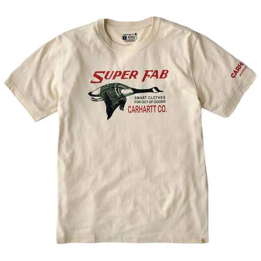 Carhartt Men's Relaxed Fit Lightweight Fab Graphic Short-Sleeve Work Shirt - Workday or weekend wear, this men's short-sleeve graphic tee has a relaxed fit for a little extra room to move. The lightweight cotton blend balances a soft touch with durability for daily wear, and Carhartt Super Fab graphics on the chest and back speak to quality. Relaxed fit Rib-knit crewneck and cuffs hold their shape throughout the day Side-seam construction minimizes twisting Carhartt "Super Fab" graphic on chest Carhartt Archive Edition printed on left sleeve Carhartt label sewn on hem Tagless neck label for a smooth feel Style: 107050