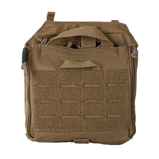 5.11 Flex TACMED Pouch - Kangaroo - When it comes to high-pressure situations, every second matters. The Flex TacMed Pouch is designed to give you a fast and efficient way to access lifesaving supplies during critical moments. This pouch is the perfect addition to your gear, ensuring you're always prepared for any emergency. The quick-pull, drop-down front opening allows for rapid deployment of essential supplies, with bungee cords, pockets, and elastic bands keeping everything organized and ready to go. The Flex TacMed Pouch is not just about speed; it's also about durability and versatility. Constructed from N500D material, this pouch is designed to withstand years of wear and tear. The FLEX-HT Mounting System keeps everything securely in place, while the front laser-cut MOLLE platform provides additional storage options for accessories and patches. The bottom elastic band is perfect for securing a tourniquet, ensuring it's always within reach when needed. An additional compartment in the back, complete with a bungee retention strap, offers space for a pair of AR magazines or other essential equipment. This pouch measures 8in H x 7.0in L x 2.0in D and weighs 0.27kgs, making it a lightweight yet durable addition to your gear. The Flex TacMed Pouch is the ultimate solution for those who need quick access to first aid supplies and additional gear storage. Don't let critical moments slip away - stay prepared with the Flex TacMed Pouch. Features: TacMed supplies and dual AR mag carry FLEX-HT Mounting System Front laser-cut platform for accessories or patches Quick pull drop front opening for access Bungee compression lashing system Elastic bands and org slip pockets Magazine compartment with compression strap Elastic band and drain holes on bottom panel 500D Nylon