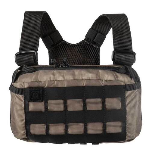 5.11 Skyweight Survival Chest Pack - Major Brown - When it hits the fan, be ready with the Skyweight Survival Chest Pack. Weighing only .27 kg., this survival pack’s one-liter capacity will keep your most critical tools at hand. The quick-release harness system is adjustable and versatile. When removed, the pack can be used as a standalone or as a waist pack. Hot pulls make access to the ambidextrous CCW compartment—sized for compact pistols—FAST. An internal loop panel provides a mounting platform while elastic bands are available to secure items. The breathable back panel keeps you comfortable and the padded pass-through is compatible with standard belts, the Skyweight Hip Belt or those from RUSH 100 backpacks. An external laminate MOLLE panel allows pouch attachment, while gear loops and bottom webbing loops expand carry options. The Skyweight Survival Chest Pack is the survival pack you can trust. Features: Lightweight, adjustable and quick release harness system Removable harness for stand alone bag or waist pack configuration Ambidextrous CCW compartment with internal loop panel and elastic bands for mags Hot pulls for quick access to CCW compartment Sized for compact pistols Breathable back panel against chest Padded rear pass through compatible with the Skyweight Hip Belt, RUSH 100 backpack belt or any standard belt (sold separately) External front laser-cut laminate MOLLE panel for pouch attachment Bottom webbing loops Gear loops 1x1 loop 330D Nylon Ripstop